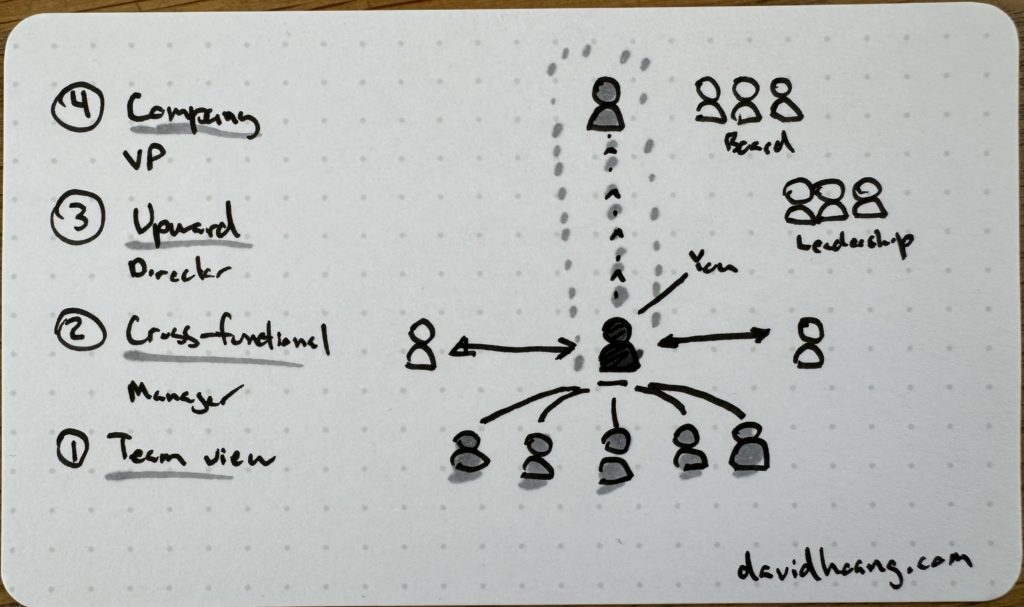 3. Upward: In addition to overseeing larger scope of org, works upward with senior leaders on strategy